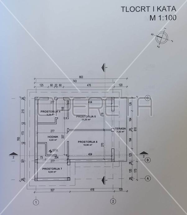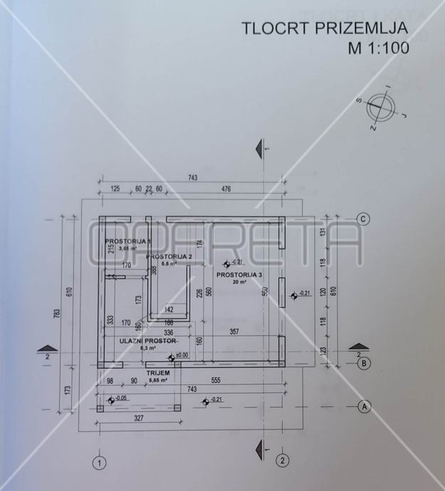 Iako kuća zahtijeva adaptaciju ili rušenje, rješenje o izvedenom stanju je već ishodovano, što znači da novi vlasnik može nastaviti graditi ili započeti gradnju po istim gabaritima.