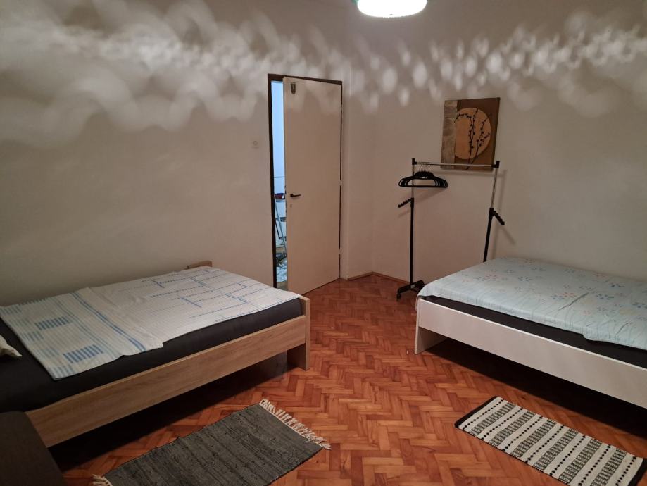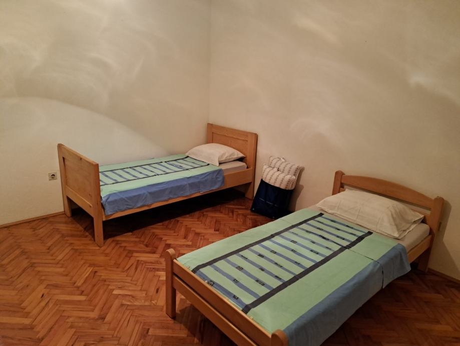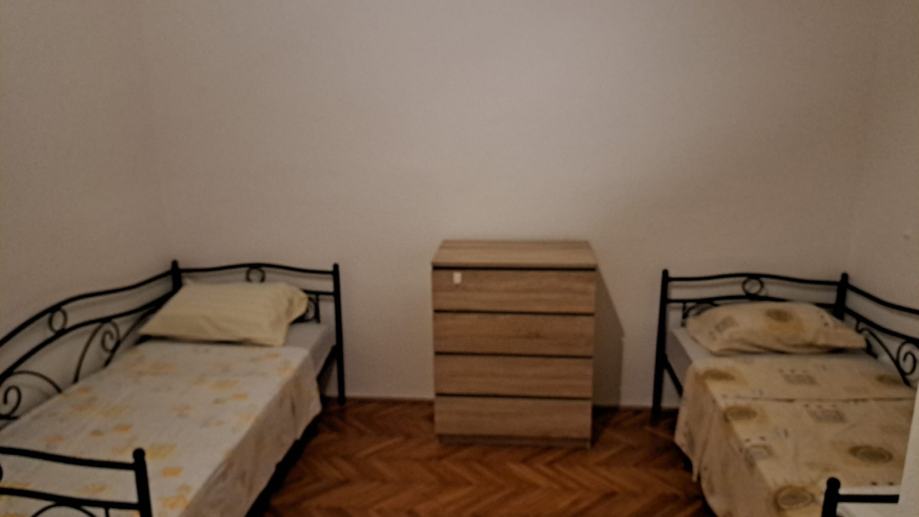 Prvi kat: hodnik, tri spavaće sobe (svaka s dva kreveta), wc, kupaonica, dva balkona