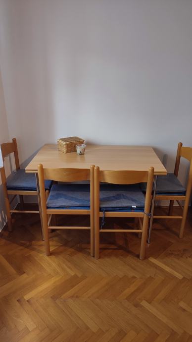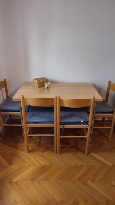 U sobi se nalazi kauč na razvlačenje, ormar, komoda s televizorom, stolić i blagaovaonski stol.