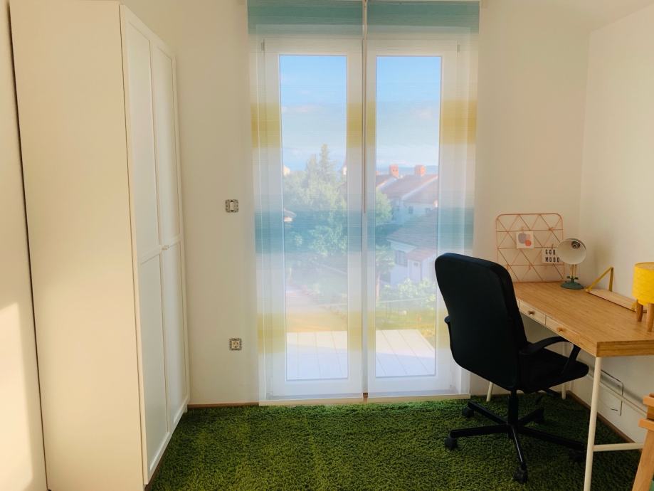 Iznajmljujemo dvosobni stan u Kostreni na prvom katu privatne kuće. Stan je kompletno opremljen sa svim kućanskim uređajima i novijim namještajem.