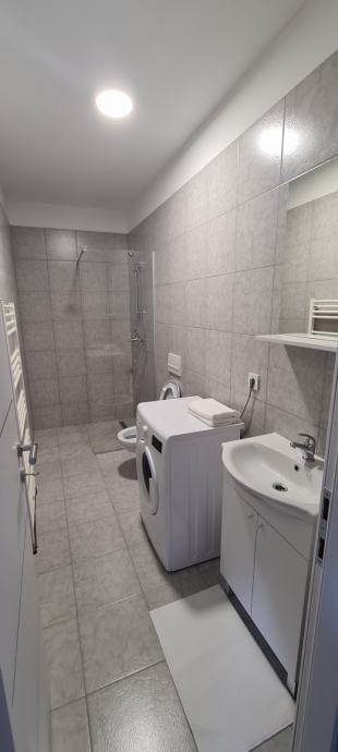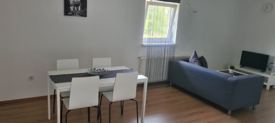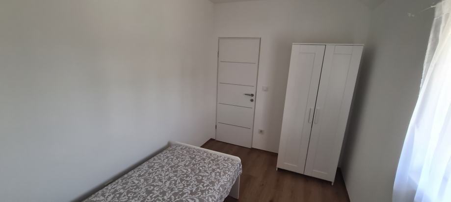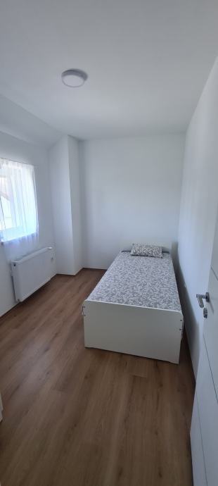 Stan trosoban, dvije spavaće sobe, dnevni boravak, kuhinja, kupaona na prvom katu stanbenog objekta. Stan je u potpunosti namješten i spreman za useljenje. Mjesečni najam sa svim režijama 550eura, polog 1000eura. ( mogučnost plačanja pologa u ratama. )