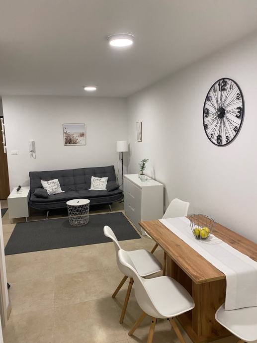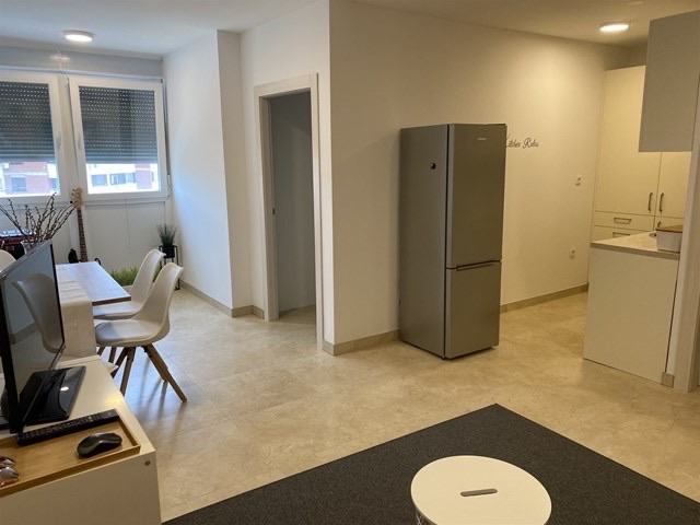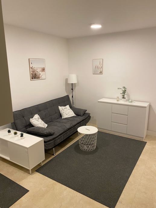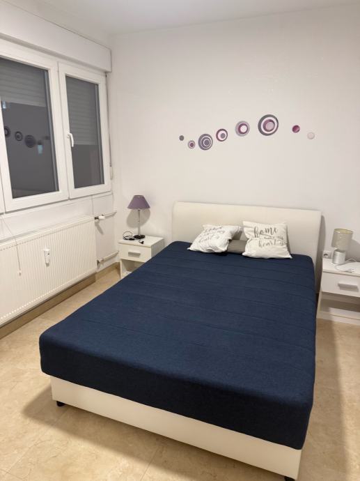 Iznajmljujem lijep, svijetao, dvosobni stan koji se sastoji od ulaznog hodnika, dnevnog boravka s kuhinjom, spavaće sobe s ugradbenim ormarom, kupaonice s wc-om i ostave s perilicom veša. Stan je novoadaptiran i kompletno namješten (kuhinja sa svim aparatima, uključujući i perilicu posuđa). Grijanje je centralno- toplana, ugradjen klima uredjaj.
