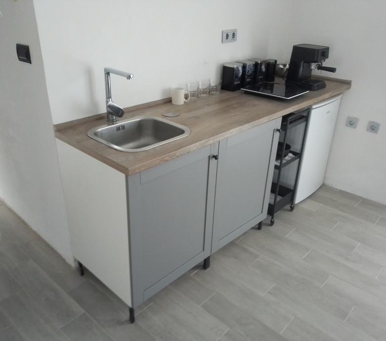 Stan se sastoji od hodnika/predsoblja, kupaonice, dnevnog boravka s kuhinjom i blagovaonicom.