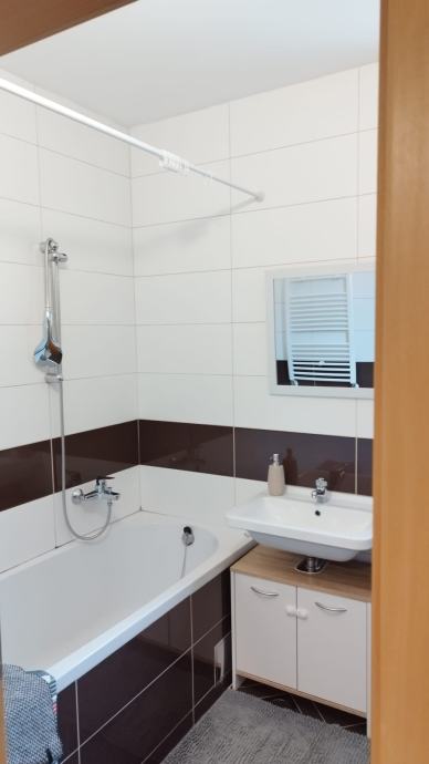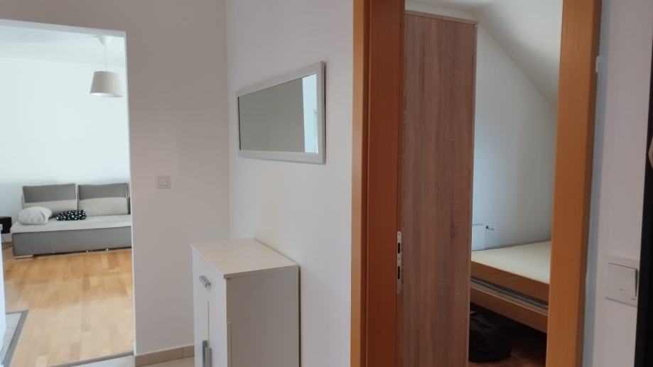 Iznajmljujemo dvosobni stan u Lugu zabočkom, novogradnja, u mirnom okruženju. Potpuno namješten. Udaljen od centra Zaboka 1.5 km. U blizini se nalaze bolnica, željeznička stanica, škola, pošta i svi ostali sadržaji. Stan je veličine 50 m2, sastoji se od dnevnog boravka, kuhinje i blagavaonice, spavaće sobe, kupaonice i prostrane natkrivene terase sa lijepim pogledom na grad Zabok i Sljeme.