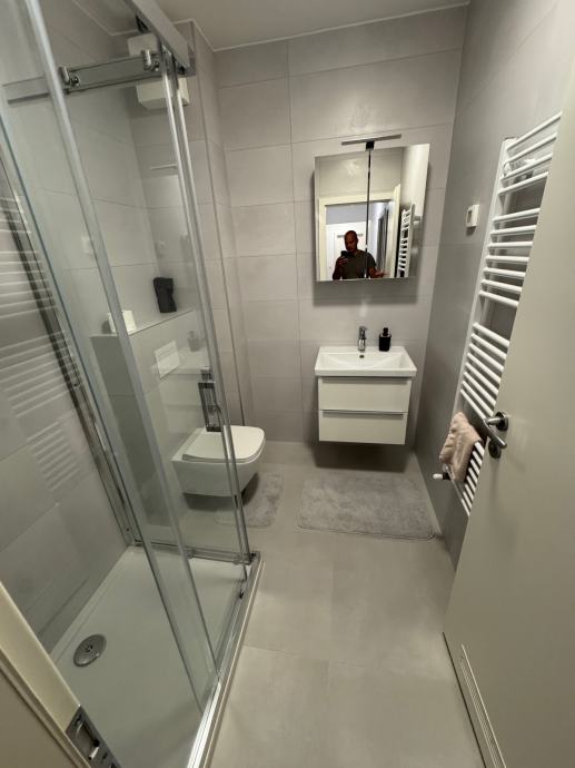 Svaka soba, kao i dnevni boravak, imaju zaseban klima-uređaj. Stan je u potpunosti namješten novim, kvalitetnim namještajem,aparatima visoke kvalitete.Uređen za vlastite potrebe, a ne za najam.