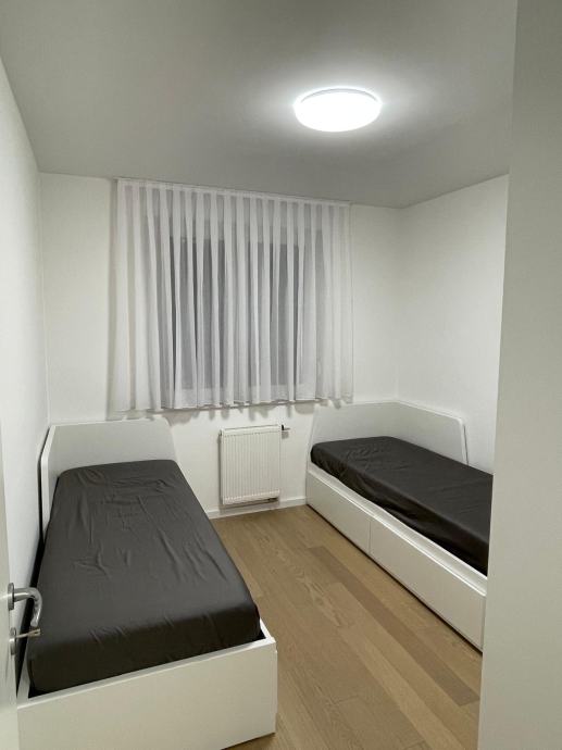 Iznajmljuje se trosoban stan u novoj, protupotresnoj zgradi (otpornost preko 9 Richtera), potpuno zaštićenoj protupožarnim sustavom. Sva vrata u zgradi imaju protupožarnu zaštitu. Energetski razred zgrade je A.
