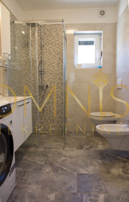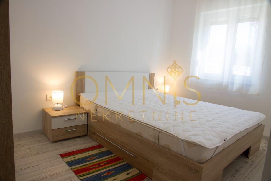 Stan je potpuno namješten i opremljen svim potrebnim kućanskim uređajima, uključujući perilicu rublja, perilicu suđa, hladnjak sa zamrzivačem, pećnicu i ostalu opremu. Podno grijanje u svim prostorijama te klima uređaj osiguravaju ugodnu temperaturu tijekom cijele godine, što dodatno doprinosi kvaliteti boravka.