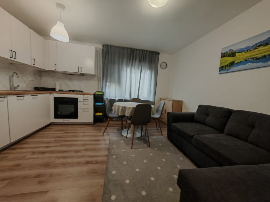 Sastoji se od dvije prostrane spavaće sobe (svaka 16 kvadrata), kupaonice s podnim grijanjem, tuš kabinom i perilicom rublja te kuhinjsko-blagovaonsko-boravišnog dijela (kuhinja s perilicom suđa).