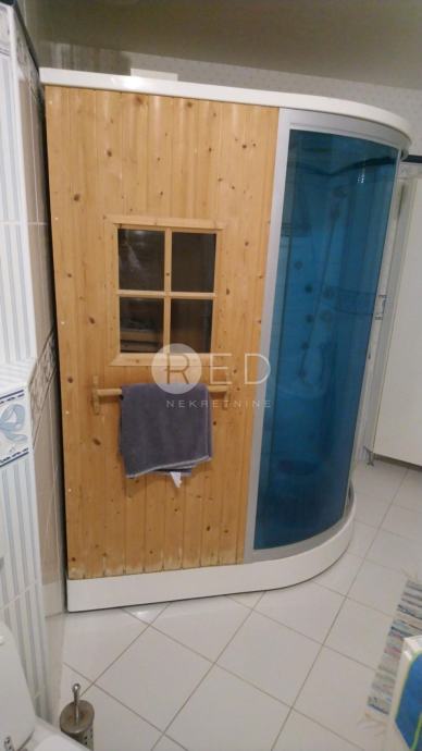 U kupaonici je napravljena mini spa-zona koja se sastoji od kutne kade (jacuzzi-a), saune, tuš kabine.