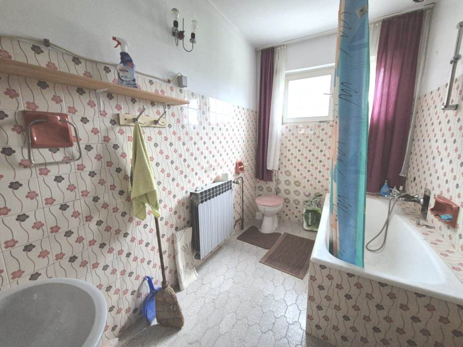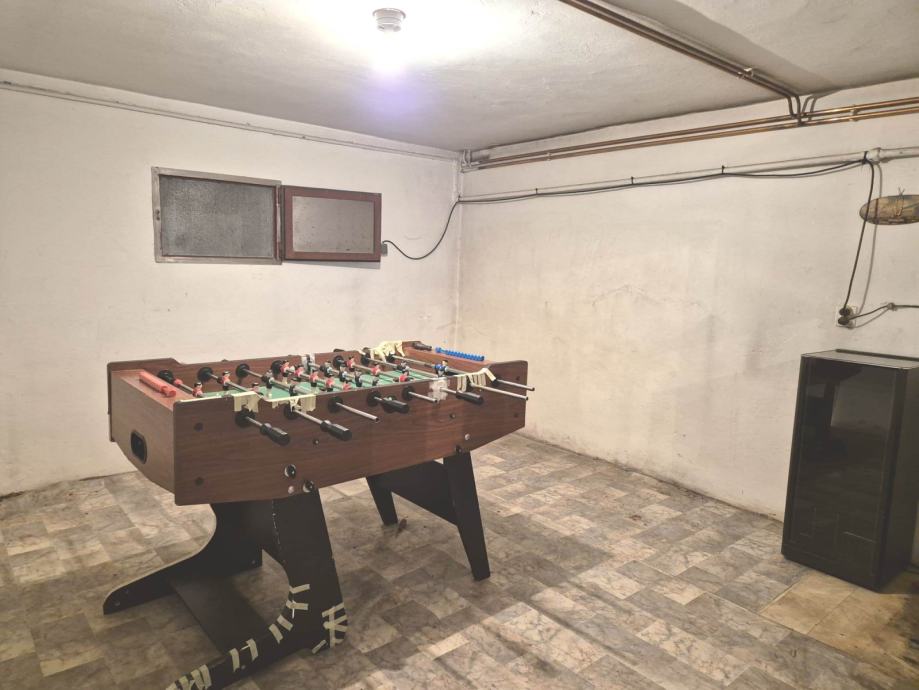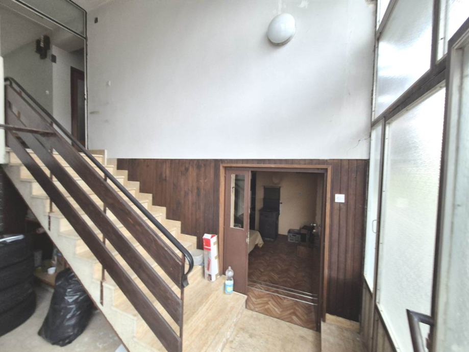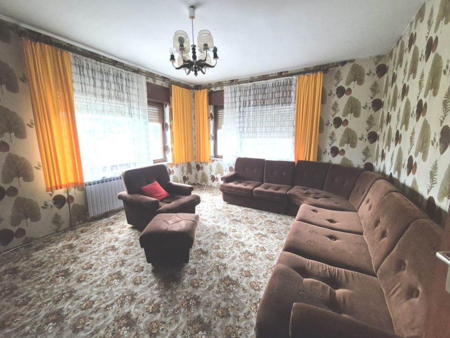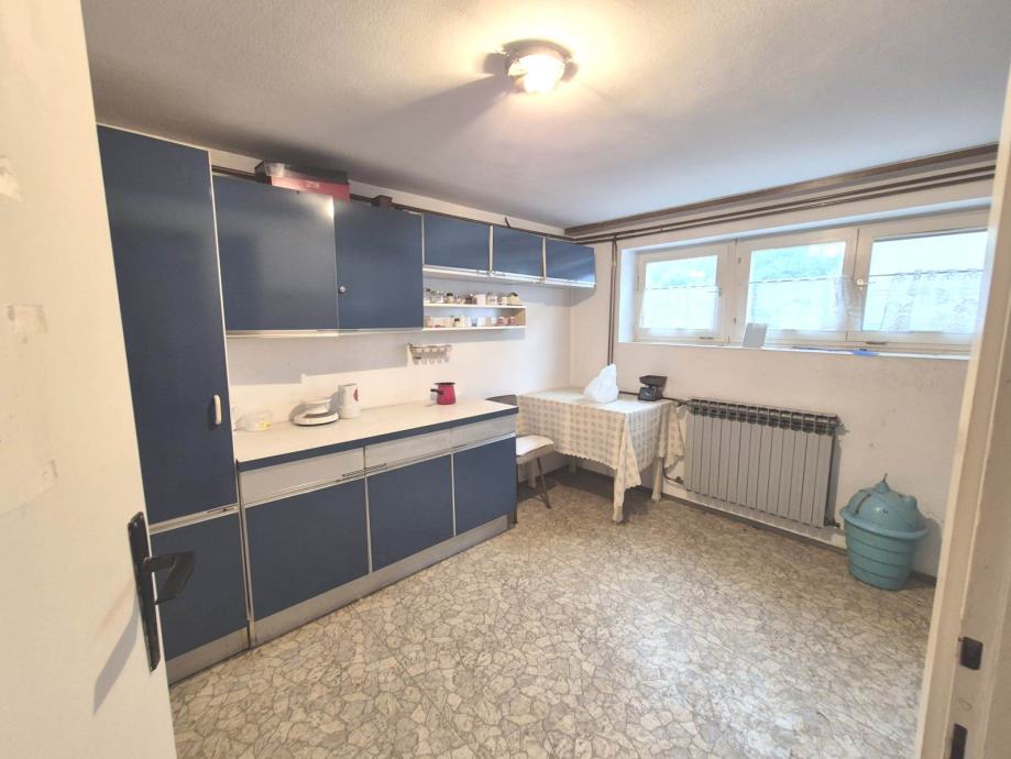 Kuća iz 80ih, prizemlje: dnevni boravak s peći na drva, kupaona – tuš, wc, zajednička prostorija / soba, kuhinja.
