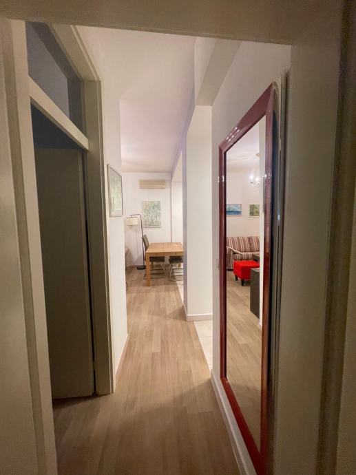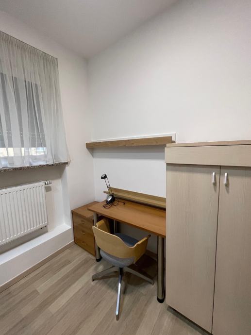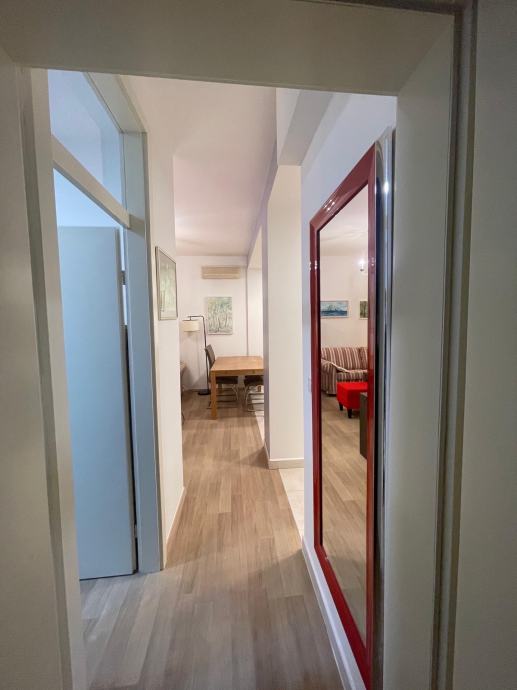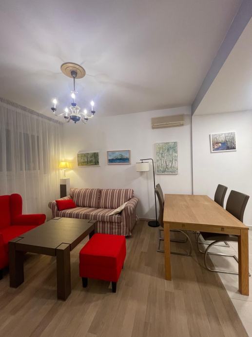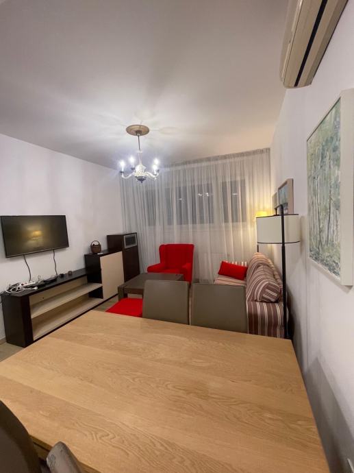 Iznajmljuje se potpuno namješten dvosoban stan od 50 m² u prizemlju stambene zgrade u ulici Ivana Trnskog na Maksimiru. Stan je orijentiran prema zapadu i sastoji se od dvije sobe, kuhinje s dnevnim boravkom i kupaonice s WC-om.