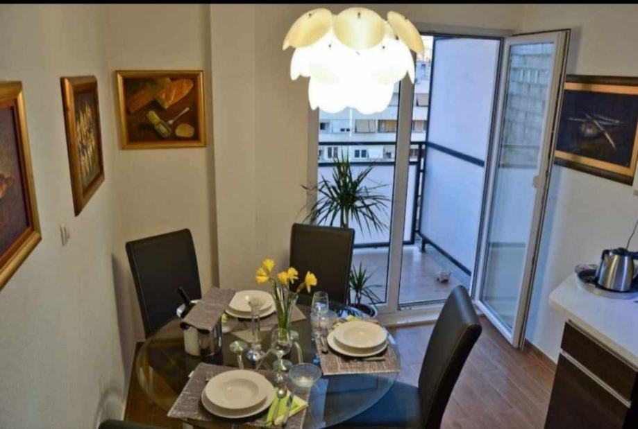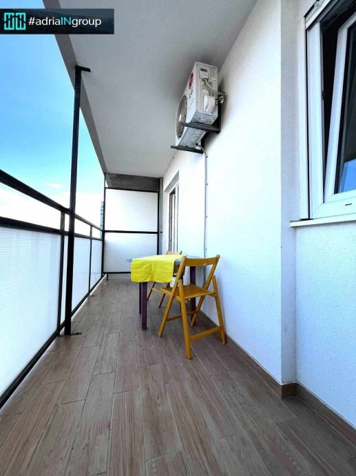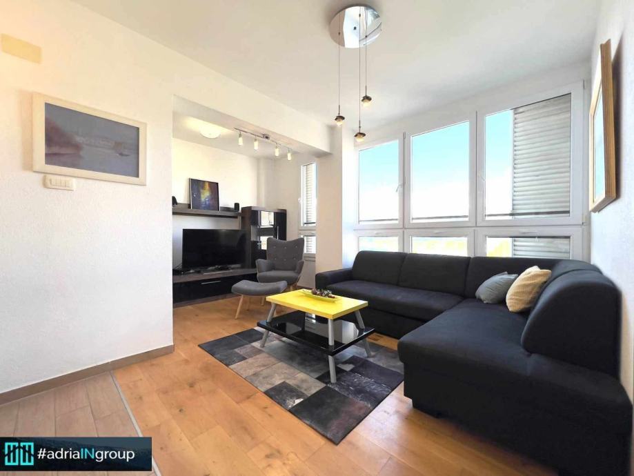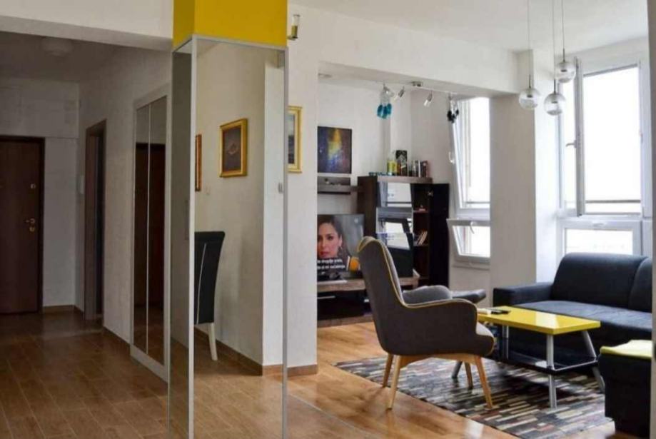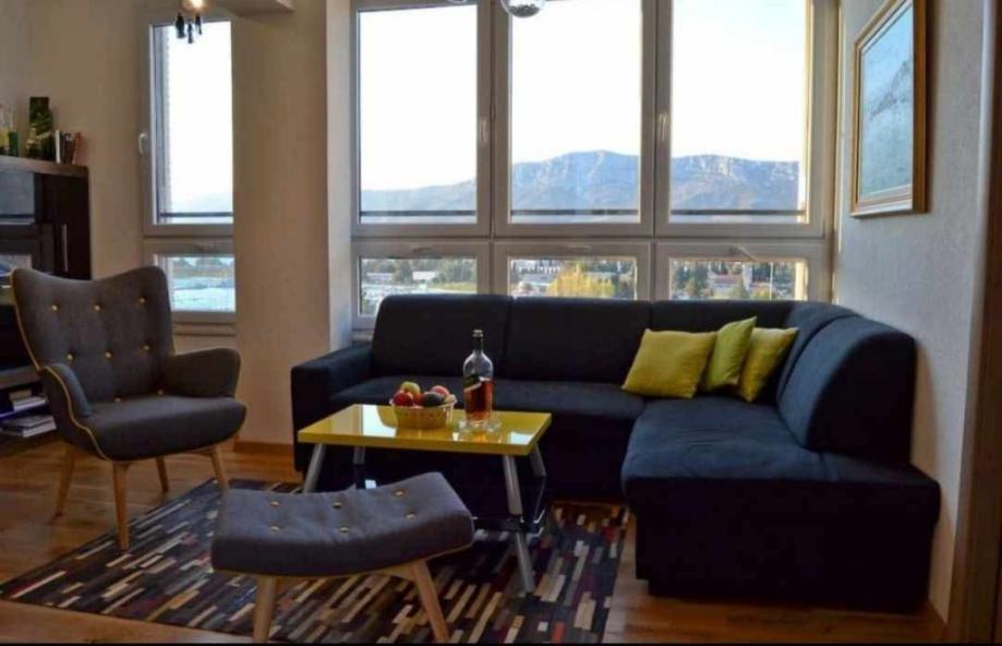 Iznajmljuje se stan s pogledom na more u Splitu na Spinutu, dugoročno. Interijer stana je brižljivo osmišljavan, te je kompletno namješten namještajem i drugom opremom. Smješten je na 7. katu zgrade s dva lifta. Sastoji se od kupatila, dviju spavaćih soba, prostranog dnevnog boravka s 5 francuskih prozora s kojih se pruža veličanstven pogled na kaštelanski zaljev, lučicu i stadion Poljud, te kuhinje s blagavaonicom iz koje se izlazi na prostranu lođu(cca 10m2). U stanu se nalazi sprema i dva zidna ormara. U dnevnom boravku predviđen je i radni dio sa stolom i radnom foteljom. Ispred zgrade je park, a prostrani parking je s istoćne strane. Stan je u blizini svih sadržaja: autobusne stanice, vrtića, osnovne i srednjih škola, fakulteta, park šume Marjan, bazena, sportskih objekata, plaže, a do centra grada je cca 1,2 km do kojeg možete doći najvećim dijelom pješačkom zonom.