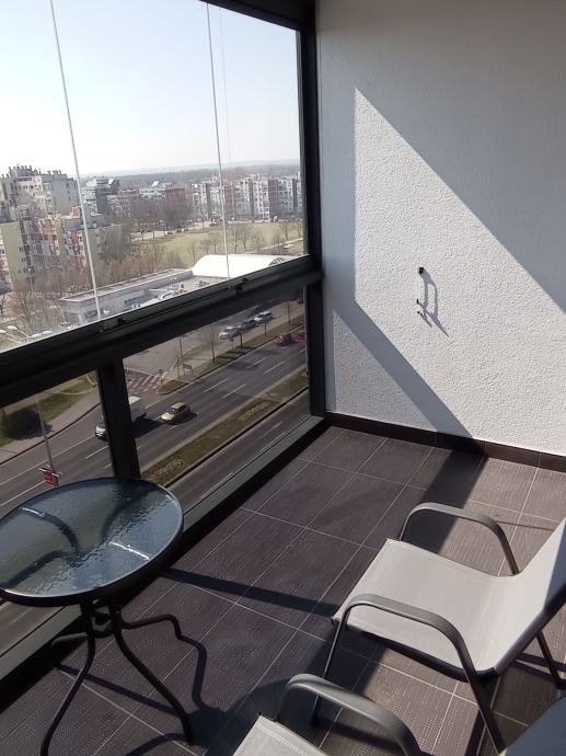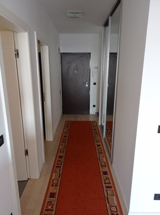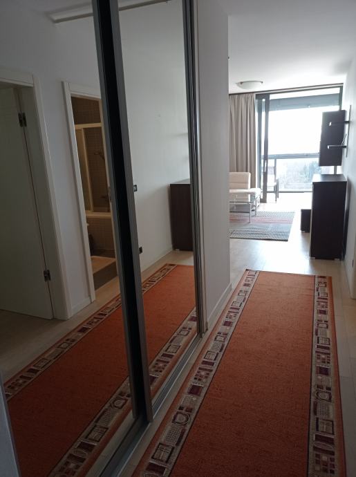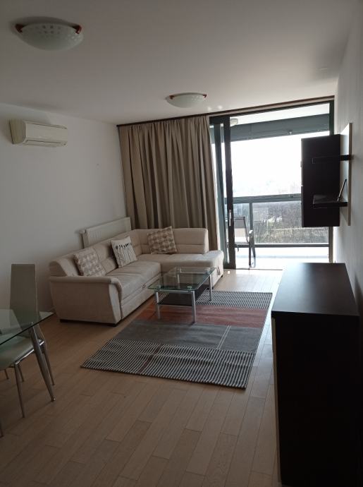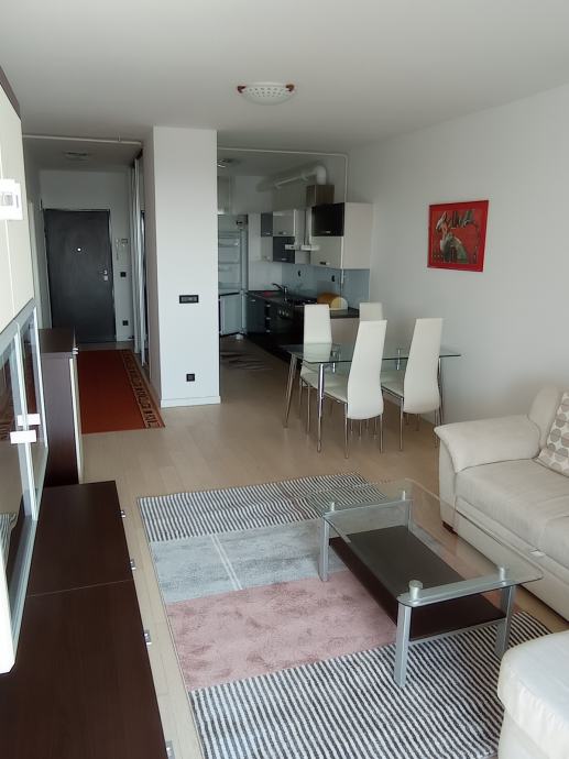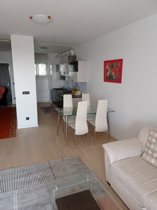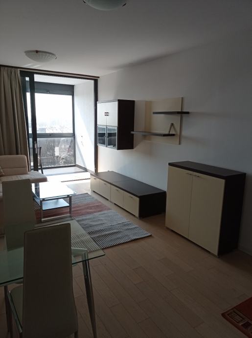 Iznajmljujem dugoročno dvosoban stan u objektu Nova galerija, Špansko, površine 56 m2, maksimalno za dvije osobe, stan je potpuno namješten. Sastoji se od dnevnog boravka, kuhinje, spavaće sobe, kupaone, hodnika, loggie i ulaznog stubišta. Stan ima protuprovalna vrata. Stanu pripada i garažno parkirno mjesto na etaži -3, koje se također može unajmiti za cijenu od 100€.