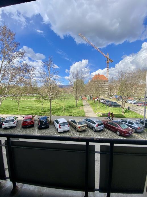 Iznajmljujem ureðeni stan od 54 m2 kraj samog parka dr. Franje Tuðmana u mirnoj ulici. Stan je moderno ureðen sa svim pripadajućim aparatima. Centralno etažno grijanje. Ima veliku spavaću sobu, balkon sa predivnim pogledom, kuhinju sa blagavaonom, dnevnu sobu, ulazni hodnik te kupaonu sa wc-om. Stan se nalazi na visokom prvom katu, u zgradi ima lift, parking ispred zgrade (druga zona). Stan je pun prirodnog svjetla, spavaća soba gleda na dvorišnu stranu pa je ugodna i tiha za spavanje. Sva potrebna infrastruktura je na minutu hoda (tramvaj, dućan, bankomat..) Iznos najma je 700 eura mjesečno plus režije.