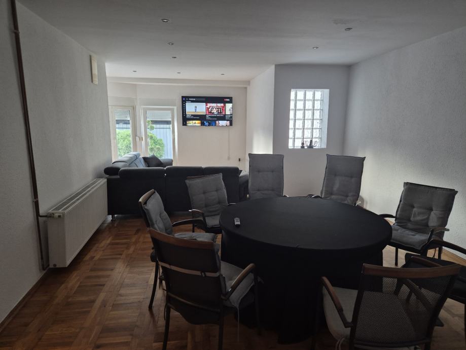 Kuca se nalazi u centru grada sastoji se od 5 soba 2 kupatila i 3 wc centralno grijanje klimatizirano i renovirano do 12 osoba
