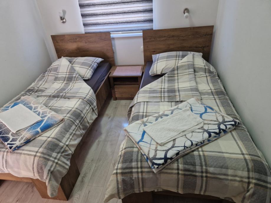Iznajmljujem kucu za radnike. Kuća se sastoji od dva stana. Ukupno 4 sobe, 2 kupaone i 2 kuhinje. Potpuno je namještena. Centralno grijanje. Wi-fi. Max-tv. Parking u dvorištu. Režije uključene u cijenu.