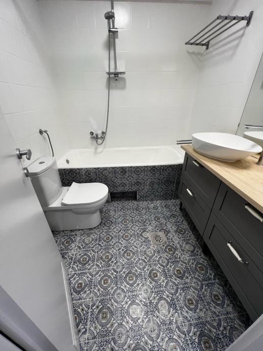 The apartment is fully furnished and equipped with a new living room and kitchen with all appliances (fridge, dishwasher, oven, induction hob, washing machine, TV and air conditioner). The apartment has a security and fireproof entrance door.