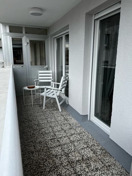 Prekrasan novouređen i renoviran stan 60 m2 s balkonom u centru grada, orijentacija istok zapad, blizina Kvaternikovog trga u ulici Bartola Kašića s pogledom na park. Stan je smješten na petom katu zgrade s liftom i ima dnevni boravak s blagavaonicom i kuhinjom, balkon, spavaću sobu s predsobljem, kupaonicu te ulazni hodnik.