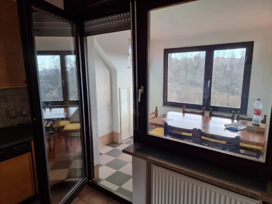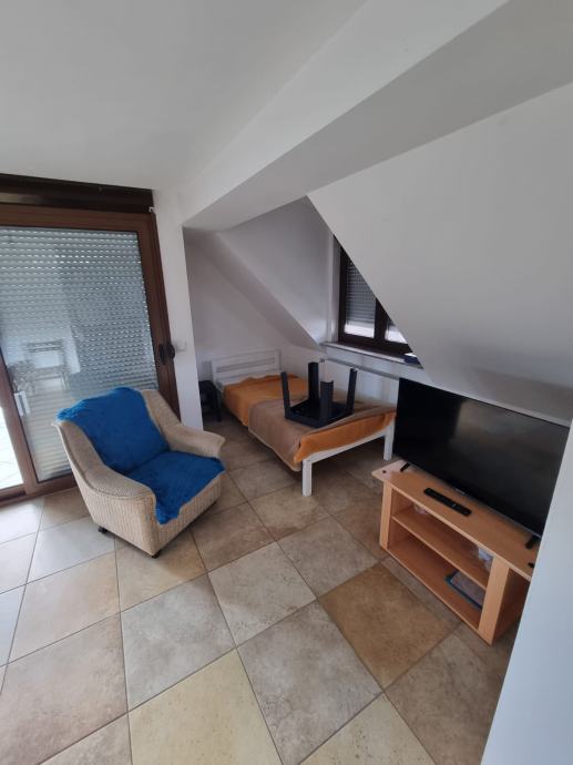 Potkrovlje se sastoji od dvije sobe, kupaonice, kuhinje, blagavaone te boravka sa dva smještaja. Ima i svoju terasu sa pogledom na grad. Osigurani ormari.