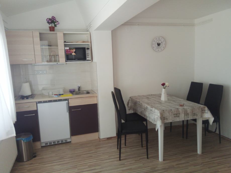 Sastoji se od dvije sobe, kupaonice s wc-om, kuhinje s blagovaonom, tavanskog prostora i terase.