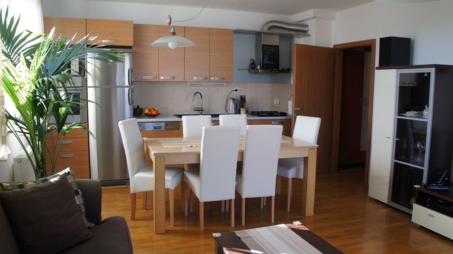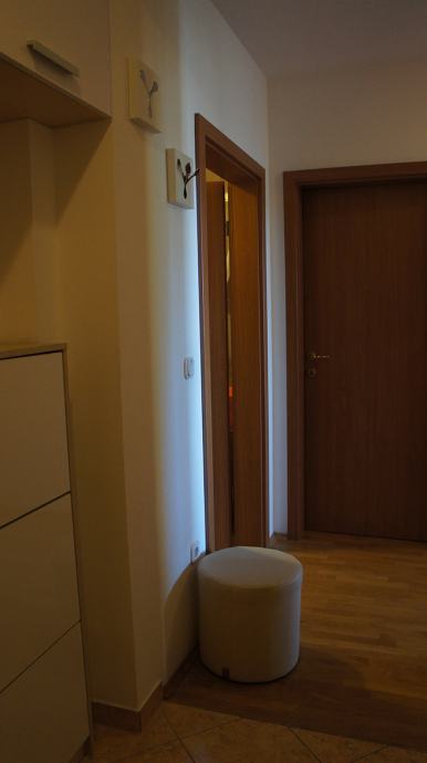 Sve su prostorije stana, izuzev manje sobe, potpuno opremljene s novim ili vrlo očuvanim namještajem. Velika spavaća soba opremljena je ormarima i bračnim krevetom (160 x 200 cm) koji ima podnicu na podizanje sa spremnikom za odlaganje posteljine. Kupaona je opremljena perilicom rublja, prostranim kupaonskim ormarima te staklenom pregradom za kadu. Kuhinja robne marke Mesarić opremljena je Electrolux frižiderom s ledenicom, napom i pećnicom te Bosch perilicom suđa. Balkon je vrlo prostran i ugodan za boravak tijekom toplih dana. Stan je opremljen PVC stolarijom te protuprovalnim vratima. Ima centralno grijanje na plin i klima uređaj. U postupku je izrada energetskog certifikata, prema kojem bi stan trebao pripadati energetskom razredu B. Orijentiran je na istok (spavaće sobe i dnevni boravak jednom stranom, uključujući balkon) i jug (dnevni boravak drugom stranom), zbog čega je svijetao i vrlo ugodan za život. Uz najam stana postoji i mogućnost najma zatvorene garaže s vratima s elektromotorom za 50 eura mjesečno.