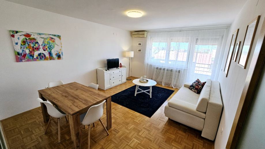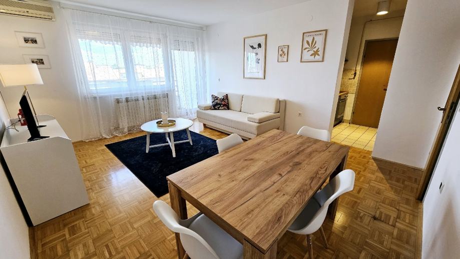 Iznajmljujem prostran i osuncan stan u centru, Zadarska 7. Sastoji se od hodnika, kupaonice, spavace sobe, dnevne sobe sa blagovaonicom i balkonom te kuhinje sa smocnicom. Stanu pripada i spremiste u podrumu. Plinski bojler i klima uredjaj upravo servisirani. Stan je na 4. od 5 katova, a zgrada ima dizalo. Dostupan je od 1.6.