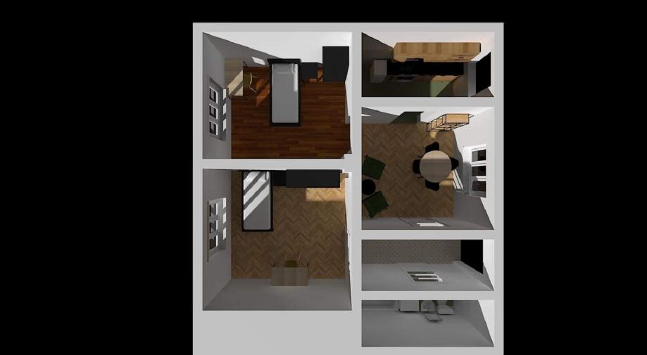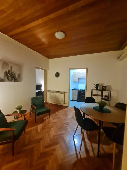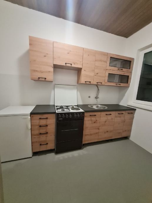 Sastoji od dnevnog boravka i blagovaonice, kuhinje, kupaonice, 2 sobe i hodnika. Sav namještaj je nov. Svaka soba ima krevet, radni stol, radnu stolicu, ormar, noćni ormarić. Grijanje je plinsko.Pvc stolarija. Kuća i krovište izolirani...