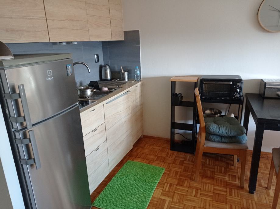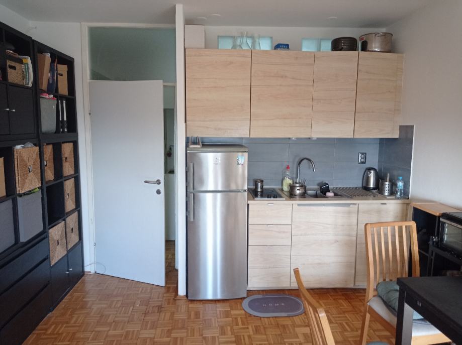 SREDIŠĆE! IZVRSNA LOKACIJA! Hitno iznajmljujemo svijetli, istočno orijentirani, novouređeni namješteni stan kao studio, na sjajnoj lokaciji na dulje razdoblje u SREDIŠĆU, Novi Zagreb (istok), na minimum 18 mjeseci! Površina za najam oko 37m2, prostor se sastoji od predsoblja, kupaonice s perilicom/sušilicom rublja, "open space" (otvoreni tlocrt) dnevnog boravka s kuhinjom i spavaćim dijelom, te loggie. Stan je namješten, ima centralno grijanje na toplanu, TV prijemnik (od najmoprimca se očekuje, ako želi, uzeti i plaćati operatera za internet i TV po svom nahođenju!) perilica/sušilica rublja; u zgradi su na raspolaganju tri lifta, pogodan za slabije pokretne osobe, zgrada je okružena zelenilom i parkovima. Polog - 1,5 mjesečni najam; sve režije plaća najmoprimac. Troškovi grijanja su izrazito niski jer je stan izrazito sunčan i okrenu prema istoku. Radi se ovjereni ugovor o najmu. Dostupno je posuđe na upit. Lokacija je izvrsno povezana s centrom i ostalim dijelovima Zagreba i autobusom i tramvajem (stanice su udaljene tek cca 70 m od ulaza u zgradu). Do pothodnika uz Tomislavac bus vozi samo 10ak min. Kvart je tih, miran, prepun zelenila, odlično opremljen trgovinama, poštom, kopirnicom, kafićima, restoranima itd. U blizini je Muzej suvremene umjetnosti, Avenue Mall, park Bundek. Stan ima energetski certifikat. Ovaj oglas daje najmodavac, a ne agencija! Na molbu šaljemo video-zapis za uvid u prostor. Molimo poslati cijenjene upite/ponude sms-om na 0917828738 ili na priloženu mail adresu ili na m.cividale@yahoo.com