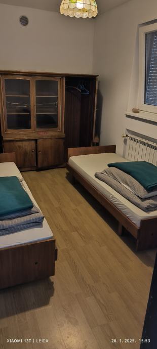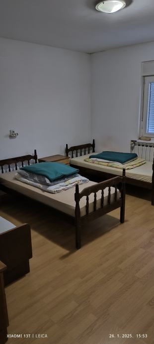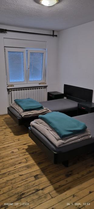 Iznajmljujem kuću na kat sa tri zasebna stana za radnike.Kat sa deset kreveta,prizemlje dva zasebna stana sa po tri kreveta.Cijena 200 eura po osobi u cijenu uračunate režije.Mogučnost iznajmljivanja po sobama.Parking osiguran!