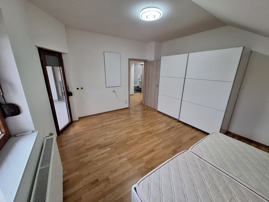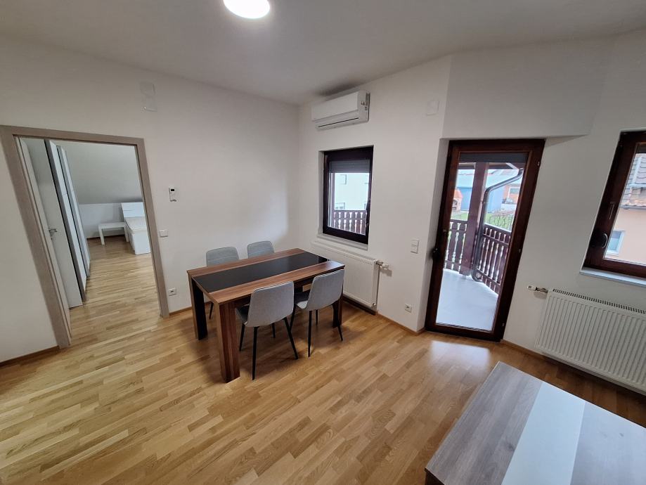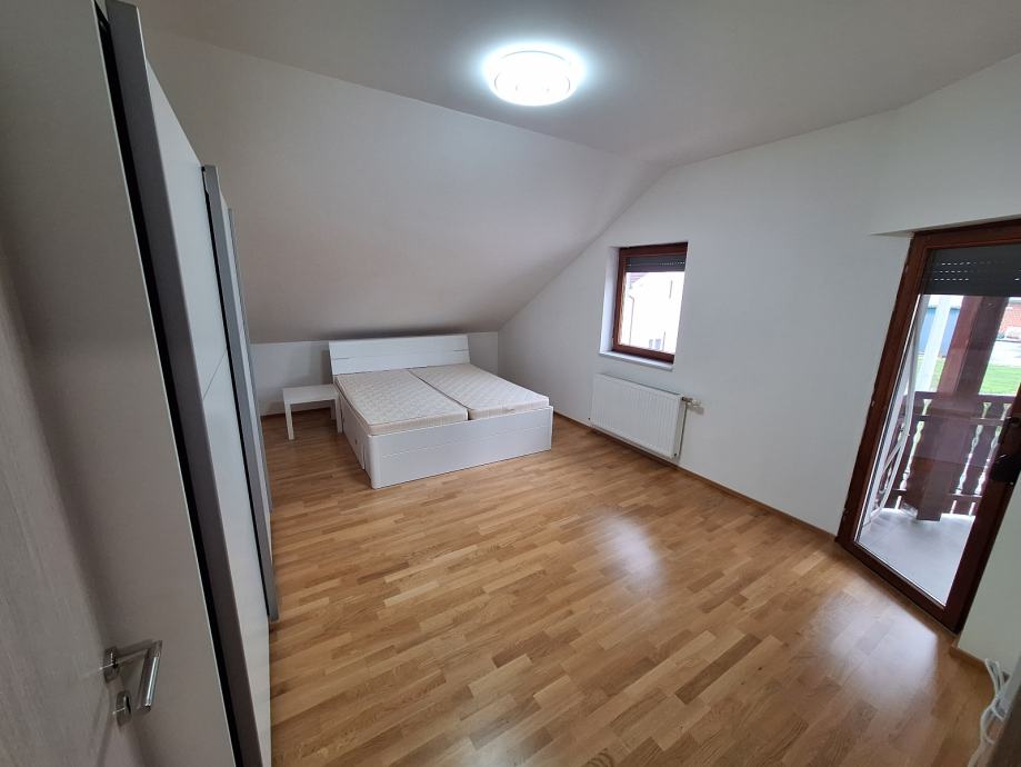 Iznajmljuje sestan od 65 m² u Dumovcu, općina Sesvete, na 1. katu obiteljske kuće odvojenih ulaza. Novi stan, do sada nije iznajmljivan, namješten. Sastoji se od spavaće sobe, dnevnog boravka s kuhinjom i blagovaonom, kupaona i WC, prostor za pranje, sušenje veša te stan ima natkrivenu terasu. Posjeduje klima uređaj, centralno grijanje te parkirno mjesto u dvorištu. U blizini