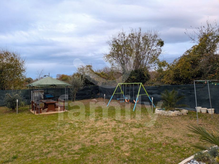 Ispred glavnog ulaza nalazi se terasa koja pruža savršeno mjesto za opuštanje s pogledom na prostrano dvorište. Okućnica uključuje roštilj, dječje igralište i dovoljno prostora za dodatne sadržaje poput izgradnje prostranog bazena, saune ili sličnoga - što čini ovu nekretninu idealnom za obitelj ili za uživanje u miru i privatnosti.