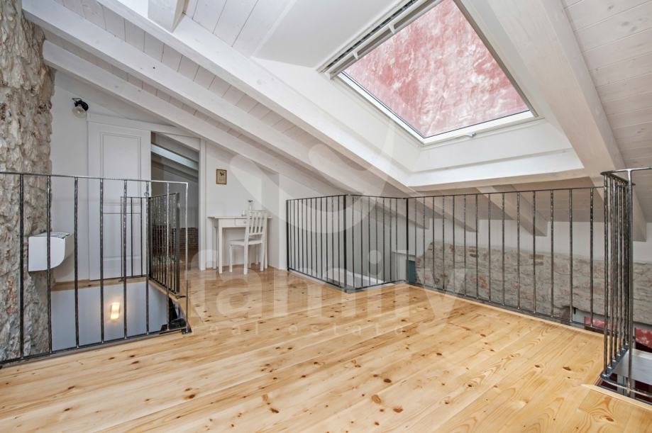Galerija (17,7 m²) – Ova intimna i ekskluzivna razina nudi lounge zonu i spavaći dio, što je čini idealnim mjestom za opuštanje i uživanje u atmosferi starog Rovinja. Stepenište koje povezuje razine dizajnirano je s iznimnom preciznošću, naglašavajući autentičnost prostora.