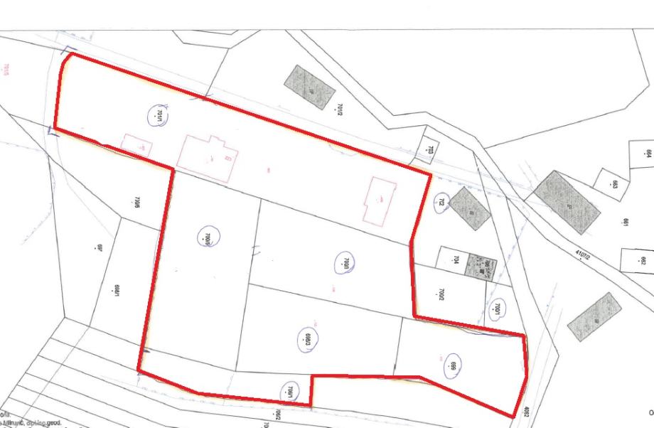 The estate spans 5000 m² of fenced land, beautifully landscaped with rich horticulture. The property features three registered buildings, with access to the estate through two driveways and additional pedestrian gates.