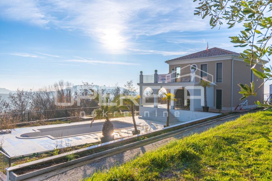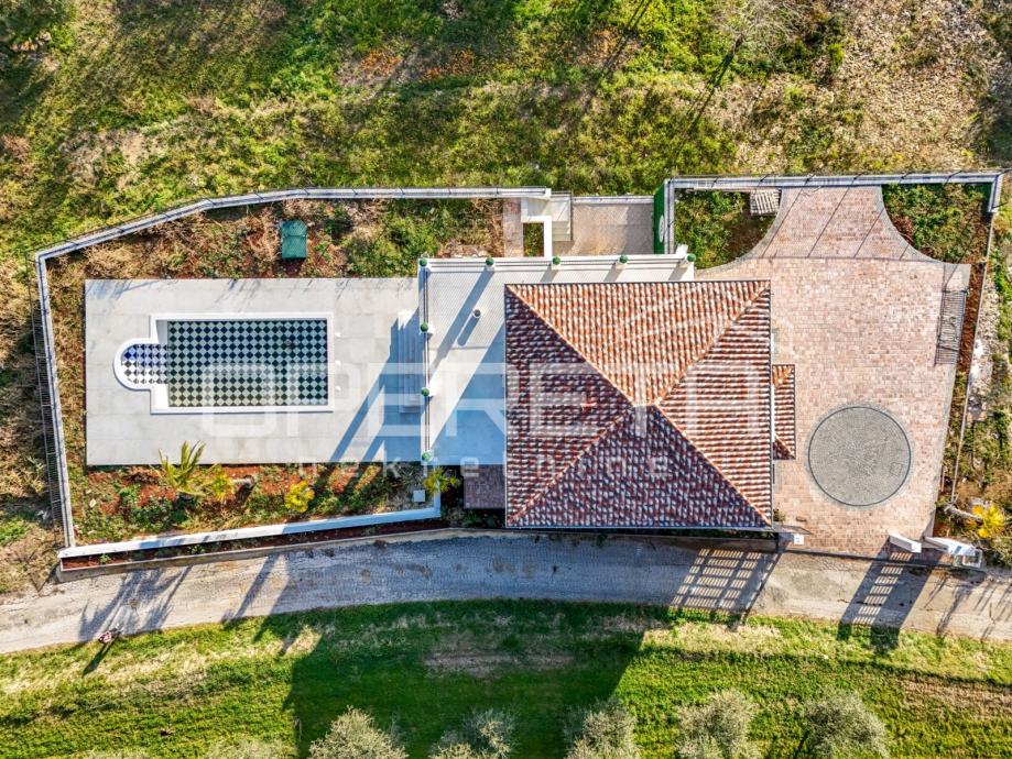Smještena na južno orijentiranom brežuljku, ova izvanredna samostojeća vila nudi neometan panoramski pogled koji se proteže preko prostranih vinograda, blagih brežuljaka i sve do mora. Izgrađena na dvije etaže, uz potpuno donje razine, nekretnina kombinira profinjenu arhitekturu, luksuzne materijale i vrhunske sadržaje, stvarajući doista jedinstven dom.