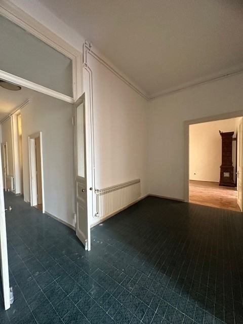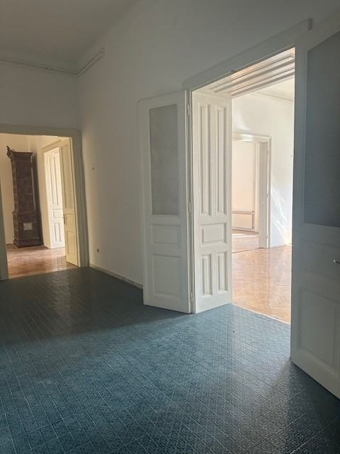 Visoki stropovi od približno 4 metra daju prostoru dojam prostranosti i svjetlosti, dok tradicionalni tlocrt karakterističan za razdoblje izgradnje nudi savršenu ravnotežu između povijesnog šarma i suvremene udobnosti. Salonske sobe su elegantno povezane, a komforni hodnik osigurava lako kretanje kroz stan.