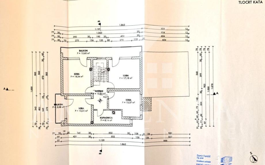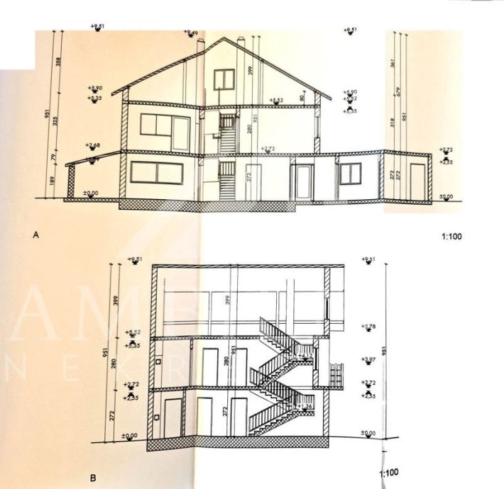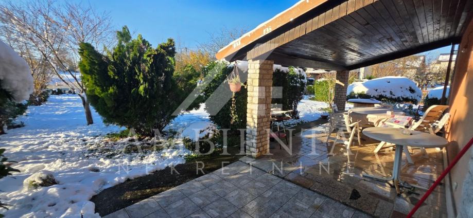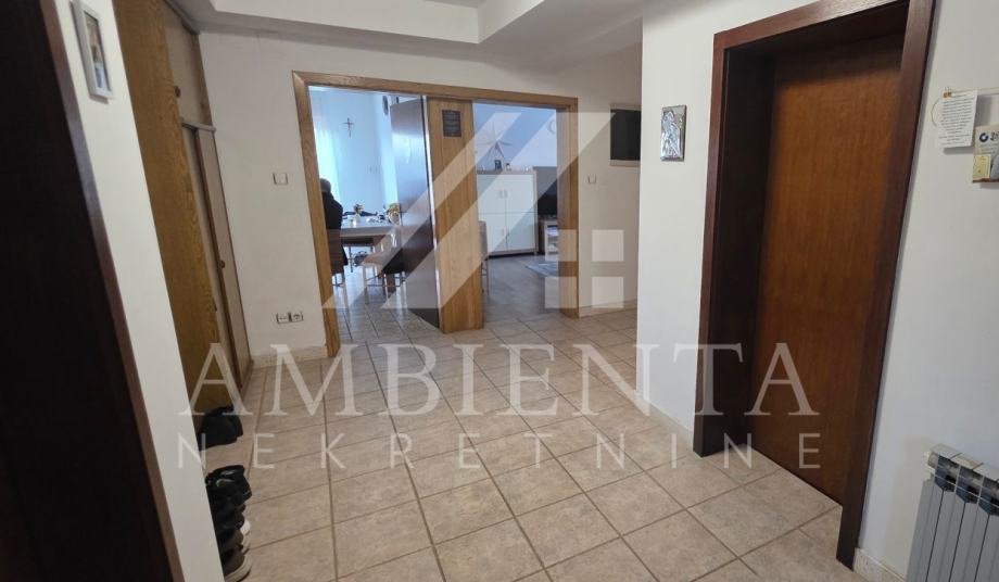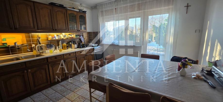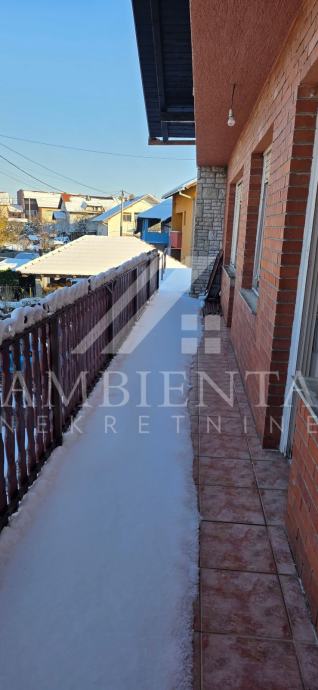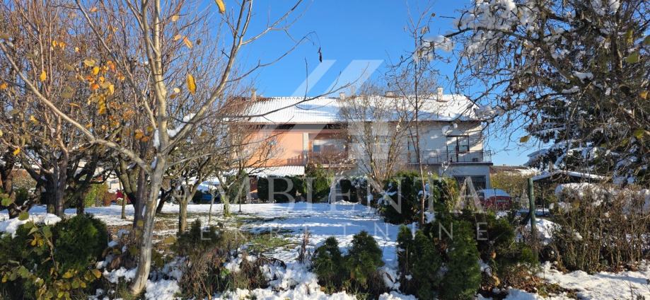 Ukupna površina kuće: 345 m²Godina završetka gradnje: 2000Ukupna površina zemljišta: 979 m²Parcela s kućom: 560 m²Dvorišna parcela: 419 m²Kuća je poluugrađena, južnim pročeljem naslonjena na susjedni objekt. Proteže se na tri etaže: prizemlje, kat i neuređeno potkrovlje s nadozidom od 80 cm, idealno za uređenje još jednog stambenog prostora.