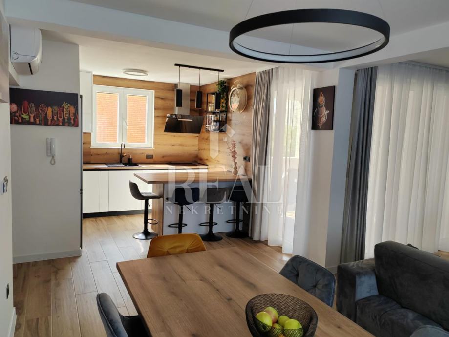 Stanovi su ostavljeni u visokom roh-bau stanju, dajući vam mogućnost odabira vrata, pločica, sanitarija i drugih opcija. Kupcu je omogućen izbor svih navedenih opcija po predviđenoj cijeni ili odabir dodatnih opcija uz doplatu . Oba stana idu s jednim vanjskim i unutarnjim parking mjestom uključenim u cijenu .