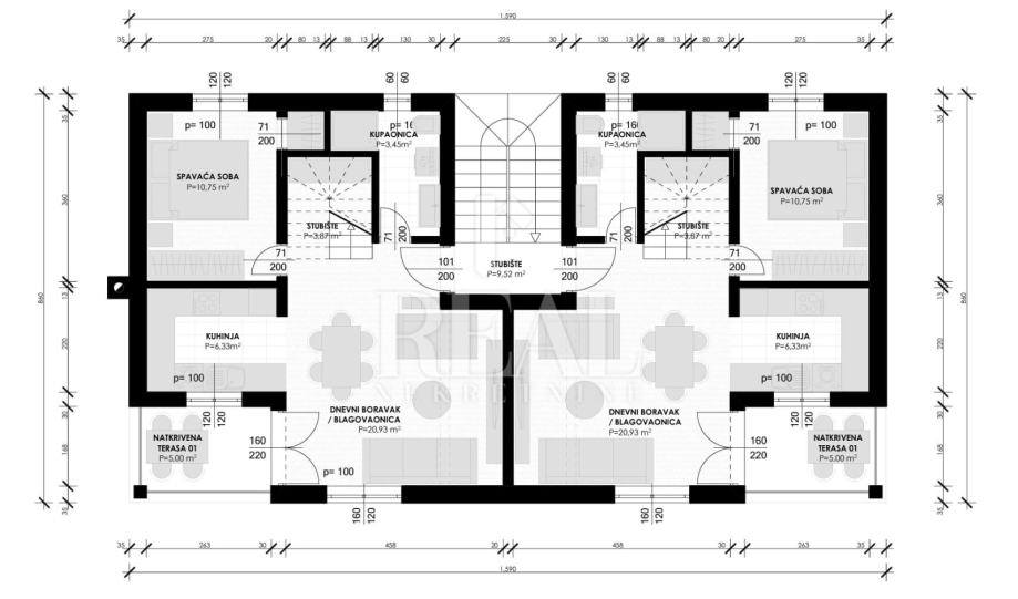 Ukupna netto stambena površina iznosi 377 m2.