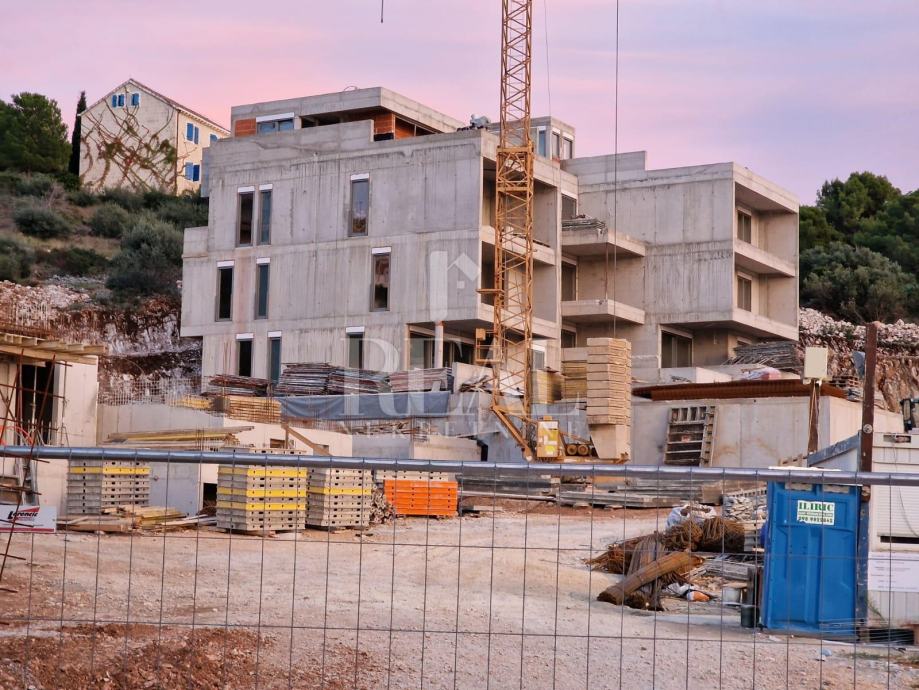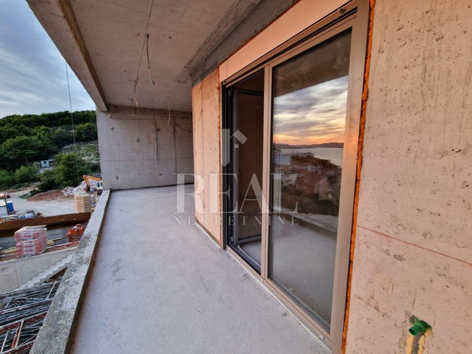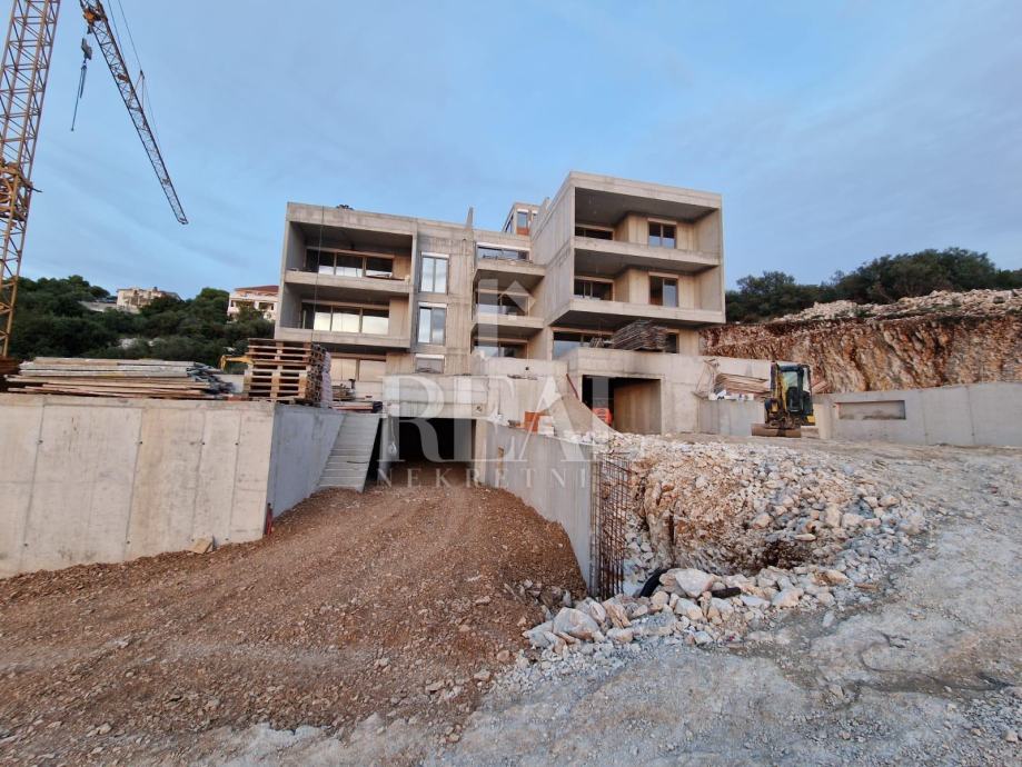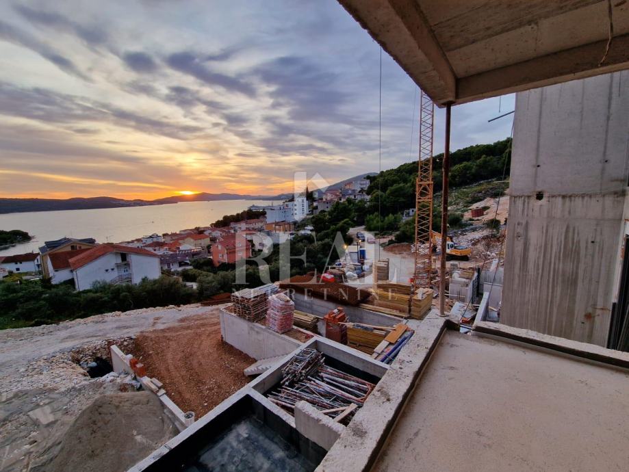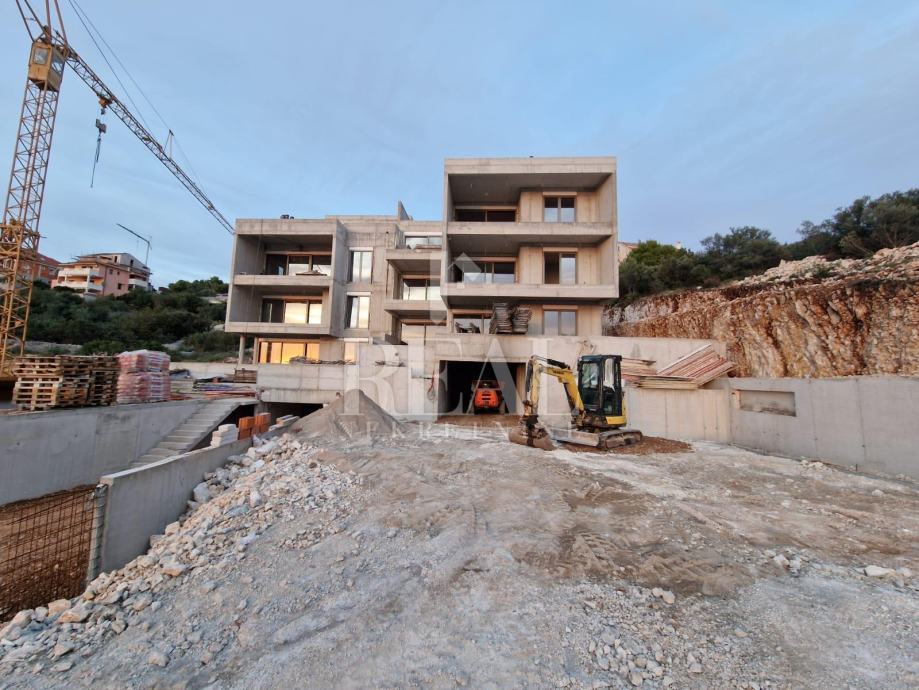 Trogir, Čiovo – na iznimnoj lokaciji s panoramskim pogledom – projekt 5 luksuznih objekata privatnog karaktera, manje zgrade s bazenima i garažom. Svaki od objekata građen je prema najvišim standardima. Stan se nalazi na prvom katu te pruža predivan pogled sastoji se od dvije spavaće sobe, kupatila kuhinje i blagovaonice te natkrivenom terasom. Stanu pripada garažno parking mjesto uz nadoplatu.