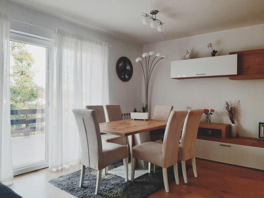 Dodatne značajke uključuju prostranu terasu prvog kata s otvorenim pogledom na okolne vrhove i spavaće sobe s izlaskom na trasu u prizemlju. Imate na raspolaganju odvojenu garažu te više vanjskih parkirnih mjesta. Prednost zelene površine dvorišta s odvojenim kolnim ulazom znatno olakšava proces planiranja moguće mobilne kućice.