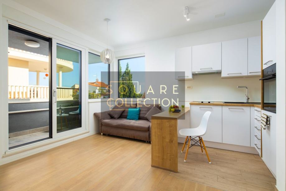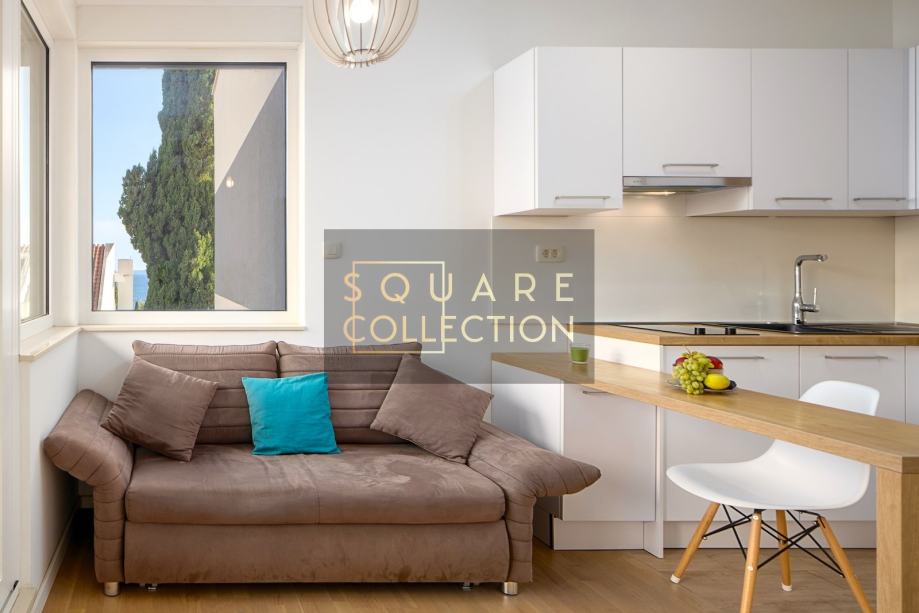 Ovaj predivni moderni stan se sastoji od jedne spavaće sobe, kupaonice i dnevnog dijela spojenog s kuhinjom. Stan se nalazi u modernoj zgradi na drugome katu pokraj najljepših Splitskih plaža, Obojene i Kašjuna.