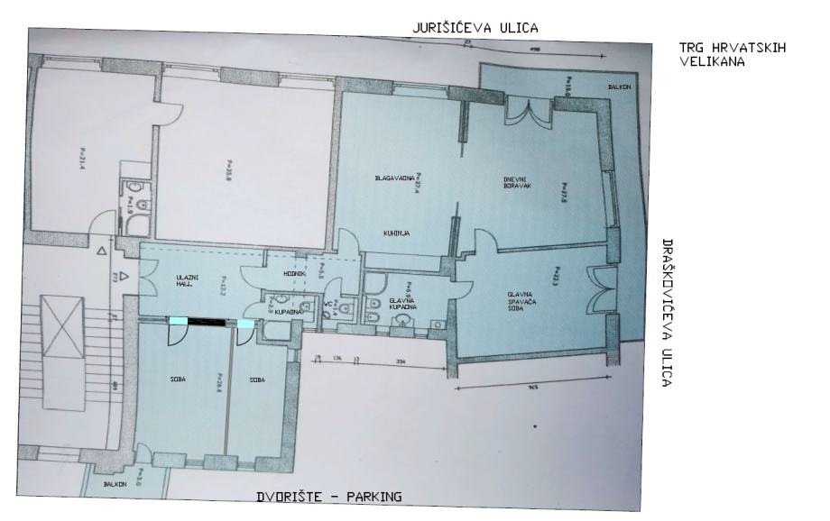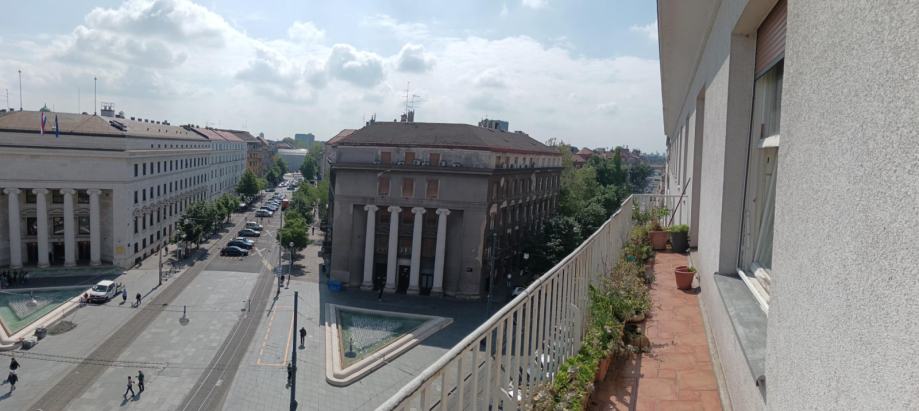 Ugao na trgu, zadnji kat, pješačka zona s parkingom u dvorištu, predivan pogled 270 stupnjeva na urbani dio grada i Medvednicu, puno svjetla i zraka, lift, 152 m2 ukupne površine, bez balkona 133 m2, detaljno renovirano prije cca 15 godina, zgrada vrhunskog arhitekta s armiranobetonskom konstrukcijom.