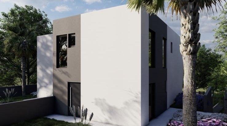 Na prodaju je moderna dvojna kuća, potpuno namještena, smještena u Jadranovu, s prekrasnim pogledom na more. Ova dvojna vila, sastoji se od dva stana, od kojih svaki ima svoj vlastiti bazen i okućnicu te privatnost. Projekt je vrlo skladno napravljen i pruža dobru iskorištenost novome investitoru, uzevši u obzir da je Jadranovo vrlo atraktivna turistička lokacija. Ova nekretnina pruža izvanrednu priliku za završavanje prema vlastitim željama i potrebama. Stan 1 iz projekta sastoji se od prizemlja i kata-u prizemlju se nalaze dnevni boravak i blagovaonica, kuhinja, soba, kupaonica, stubište te loggia, a na katu se nalaze tri spavaće sobe sa tri kupaonice, kao i stubište i loggia. Ukupna površina ovoga stana je 123,76m2. Drugi stan se sastoji od prizemlja, u kojemu se nalaze dnevni boravak i blagovaonica, kuhinja, soba sa kupaonicom, stubište i loggia. Na katu se nalaze tri spavaće sobe, sa tri kupaonice, te hodnik i loggia, a ovaj stan je ukupne kvadrature 140,10m2.