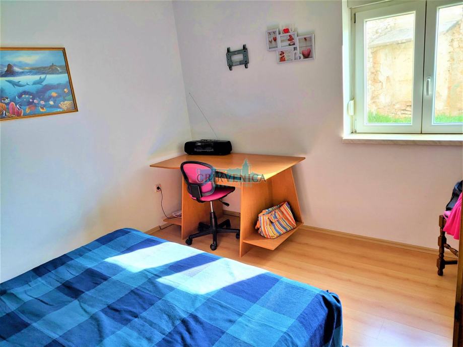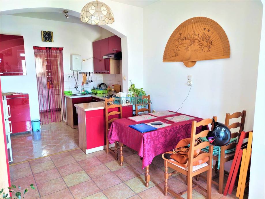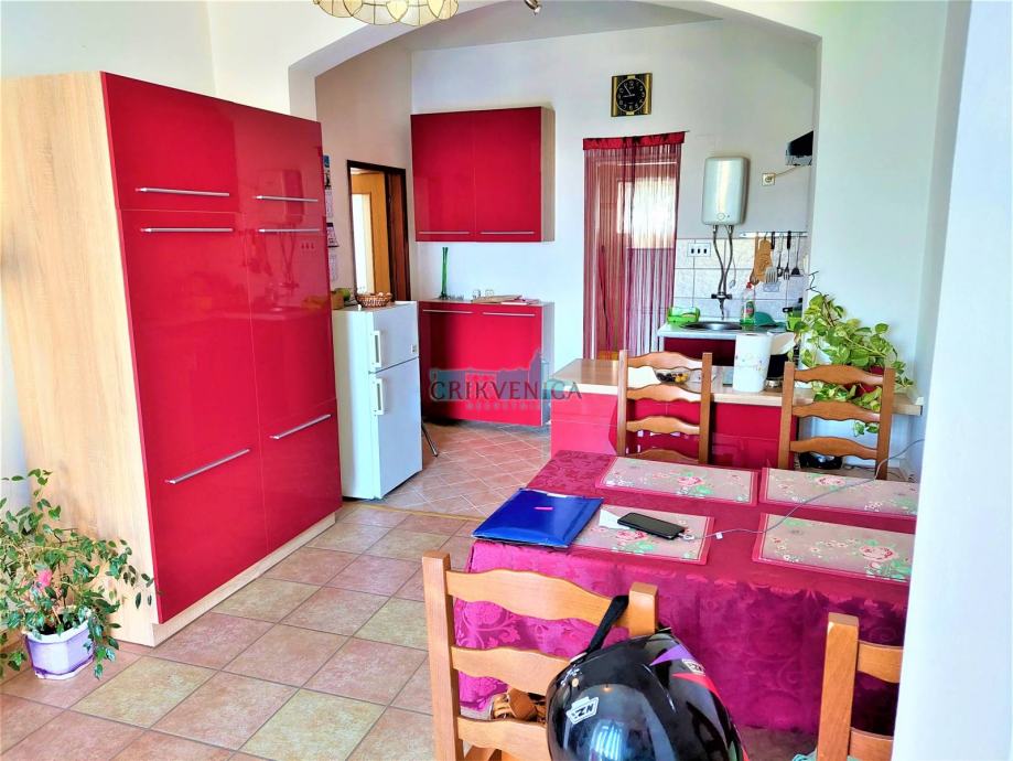 Jadranovo - iznad najljepše plaže u Jadranovu, prodajemo samostojeću kuću udaljenu manje od 500 m zračne linije. Kuća se sastoji od 3 odvojena stana. U prizemlju su dva jednosobna stana dok je na katu stan s dvije spavaće sobe, dnevnim boravkom, kuhinjom, blagovaonom, kupaonom i velikom terasom površine cca 20 m2 s pogledom na more. Ispred kuće je dovoljno mjesta za parking 3 auta. Iza kuće je okućnica na kojoj se nalazi jedna kupaona u sklopu kuće te pomoćna zgrada. Na okućnici je dovoljno mjesta za jedan manji bazen. Dokumentacija uredna (uporabna dozvola).