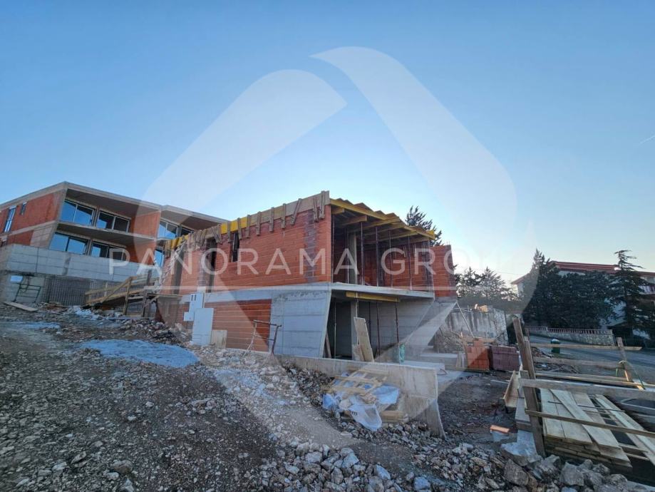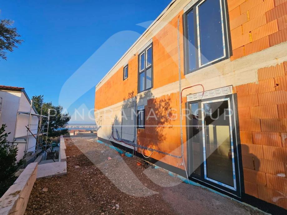 Na prodaju je moderna dvojna kuća, smještena u Jadranovu, s prekrasnim pogledom na more. Ova dvojna vila, sastoji se od dva stana, od kojih će svaki imati svoj vlastiti bazen i okućnicu te privatnost. Projekt je vrlo skladno napravljen i pruža dobru iskorištenost novome investitoru, uzevši u obzir da je Jadranovo vrlo atraktivna turistička lokacija. Po projektu je ovdje predviđena dvojna vila, sa dva stana, od kojih će svaki imati svoj vlastiti bazen i okućnicu te privatnost. Stan 1 iz projekta sastoji se od prizemlja i kata-u prizemlju se nalaze dnevni boravak i blagovaonica, kuhinja, soba, kupaonica, stubište te loggia, a na katu se nalaze tri spavaće sobe sa tri kupaonice, kao i stubište i loggia. Ukupna površina ovoga stana je 140 m2. Drugi stan se sastoji od prizemlja, u kojemu se nalaze dnevni boravak i blagovaonica, kuhinja, soba sa kupaonicom, stubište i loggia. Na katu se nalaze tri spavaće sobe, sa tri kupaonice, te hodnik i loggia, a ovaj stan je ukupne kvadrature 123 m2.