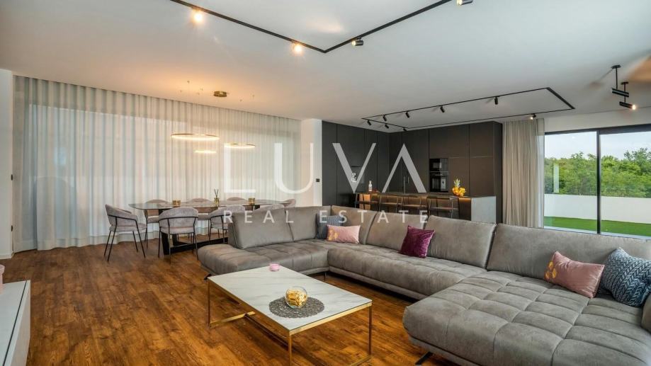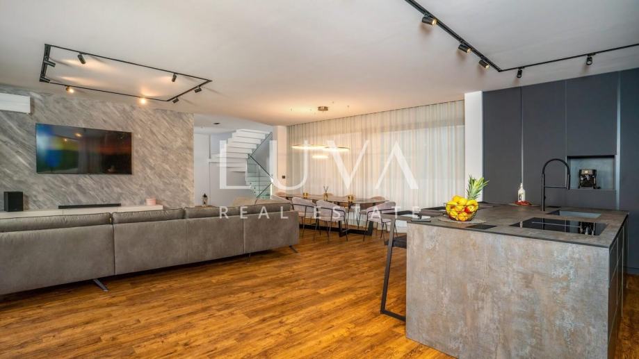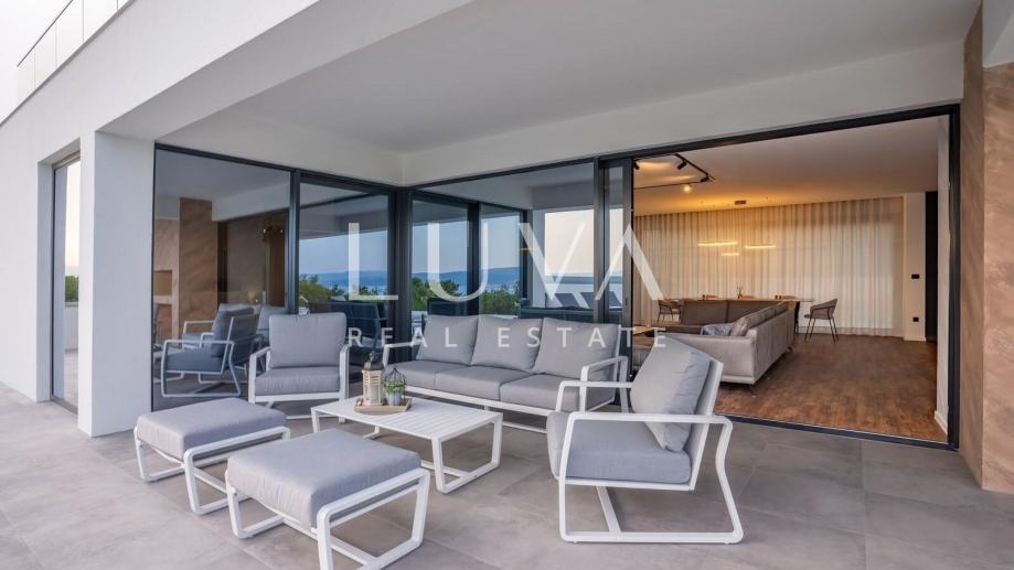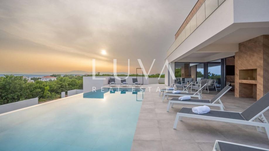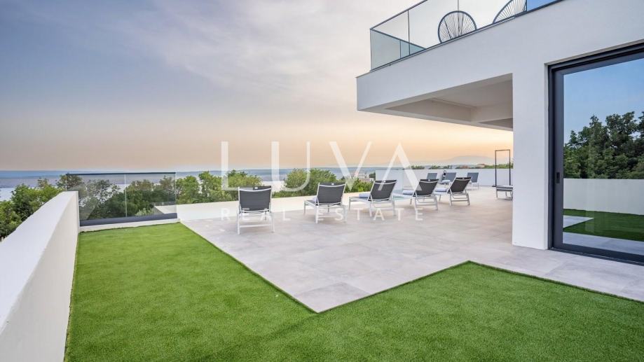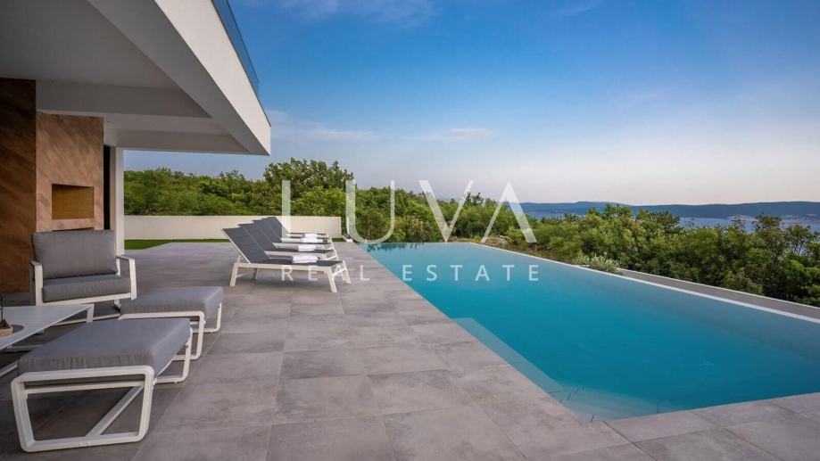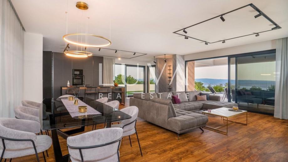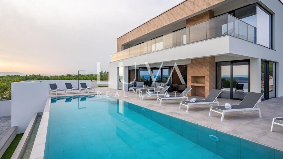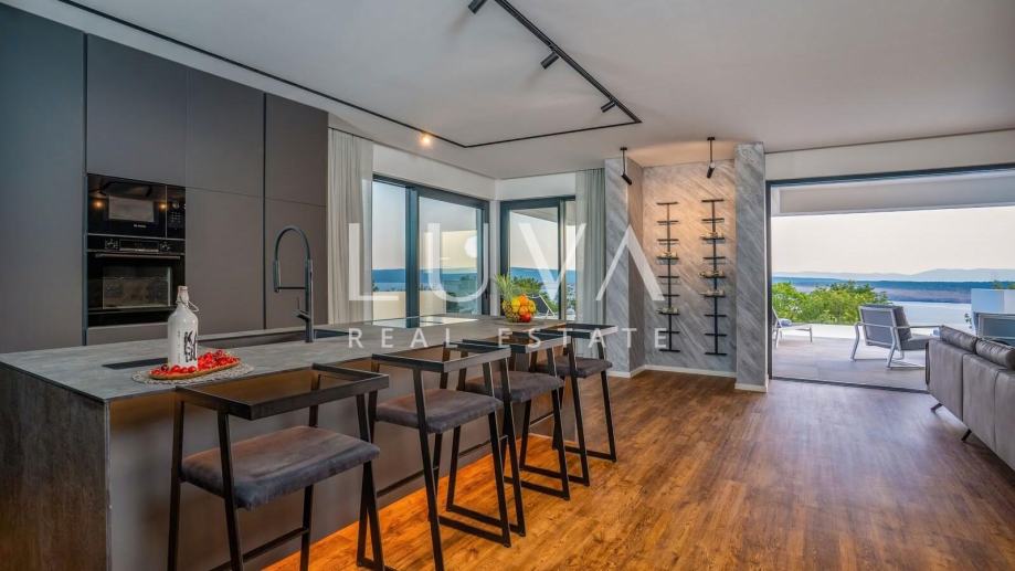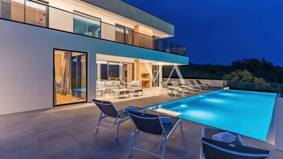 Prodaje se luksuzna vila s predivnim pogledom na more u mirnom mjestu Jadranovo, blizu Crikvenice. Vila ja izgrađena 2024. godine na posjedu od 1300 m2. Sama vila je površine 400 m2 i proteže se na 2 etaže. U prizemlju se nalazi potpuno opremljena moderna kuhinja i prostrani dnevni boravak iz kojeg se kroz velike staklene stijene izlazi na terasu s vanjskim bazenom.