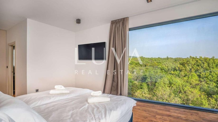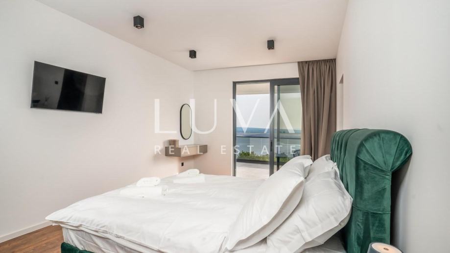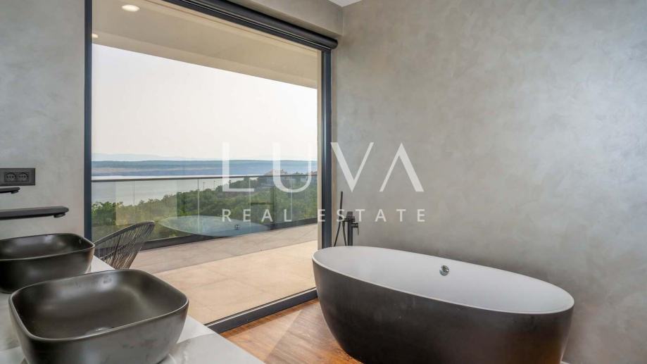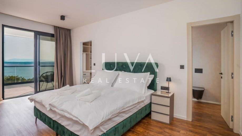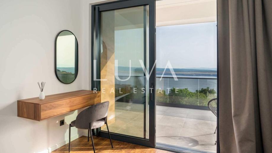 Vila ima 4 spavaće sobe od kojih svaka ima vlastitu kupaonicu, a također sve spavaće sobe imaju izlaz na terasu s koje se pruža predivan panoramski pogled na more i na otok Krk.