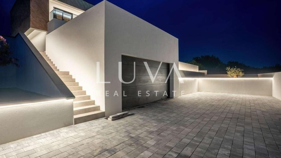 Cijeli posjed vile je potpuno ograđen te ima dovoljno parking mjesta, a vila ima i garažu za 2 vozila. Vila se nalazi blizu mora te se prodaje potpuno namještena i opremljena, a vila je trenutno u funkciji turističkog najma tako da ova vila može biti prilika za investiciju.