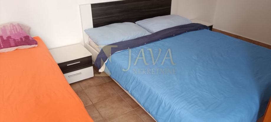 Iznajmljuje se komotan dvoetažni stan s pogledom na more u manjoj zgradi, udaljen 200 m od same plaže, a prednost je što ima i parking.