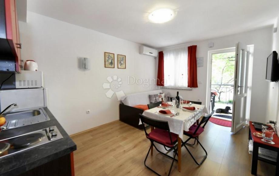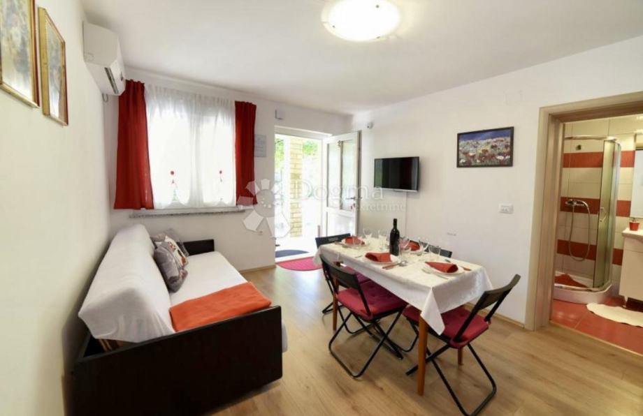 Stan je namješten i opremljen svim osnovnim uređajima, pružajući ugodno i funkcionalno okruženje za svakodnevni život. Blizina mora, trgovina i restorana čini ovu nekretninu odličnim izborom za pojedince, parove ili manje obitelji koje traže dugoročan smještaj u mirnom i slikovitom dijelu Jadranske obale.